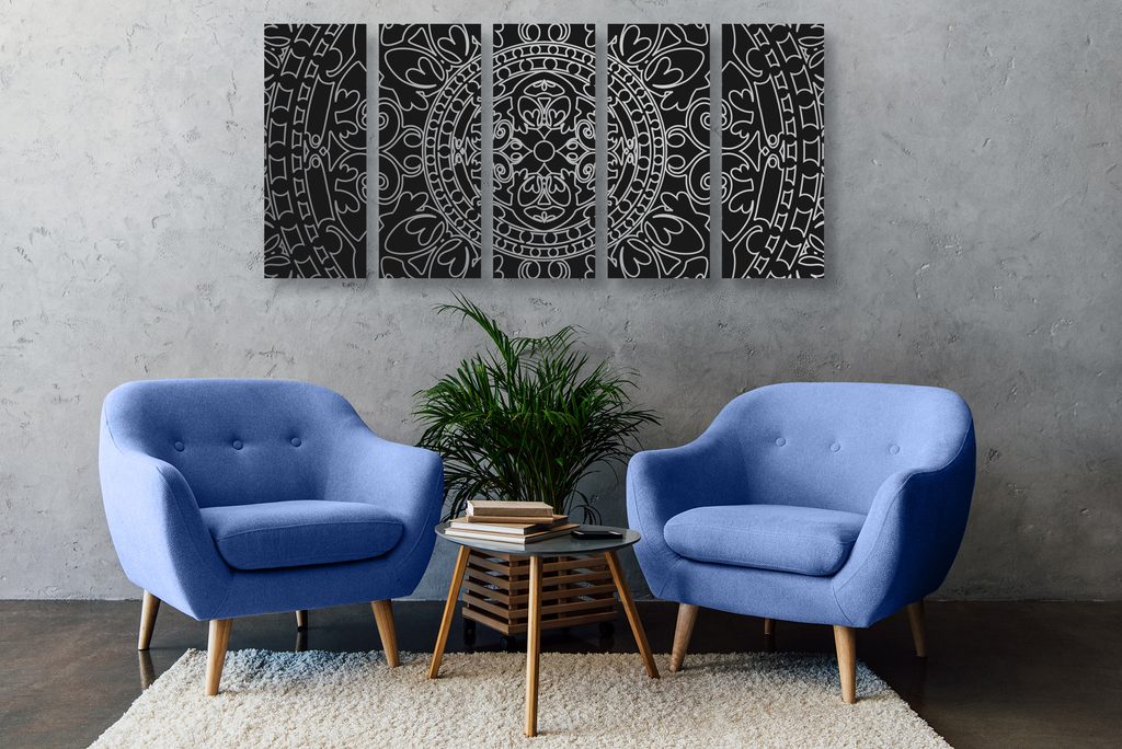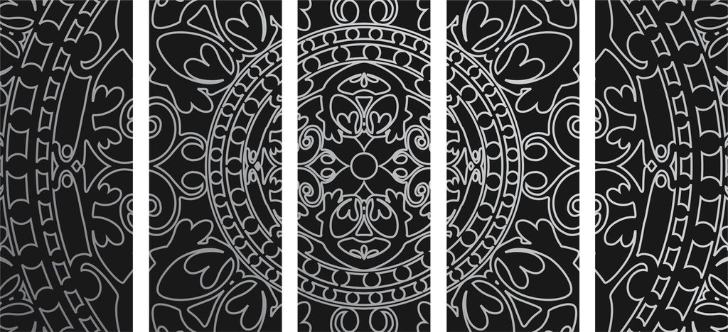 5-dielny obraz čiernobiely luxusný oranament