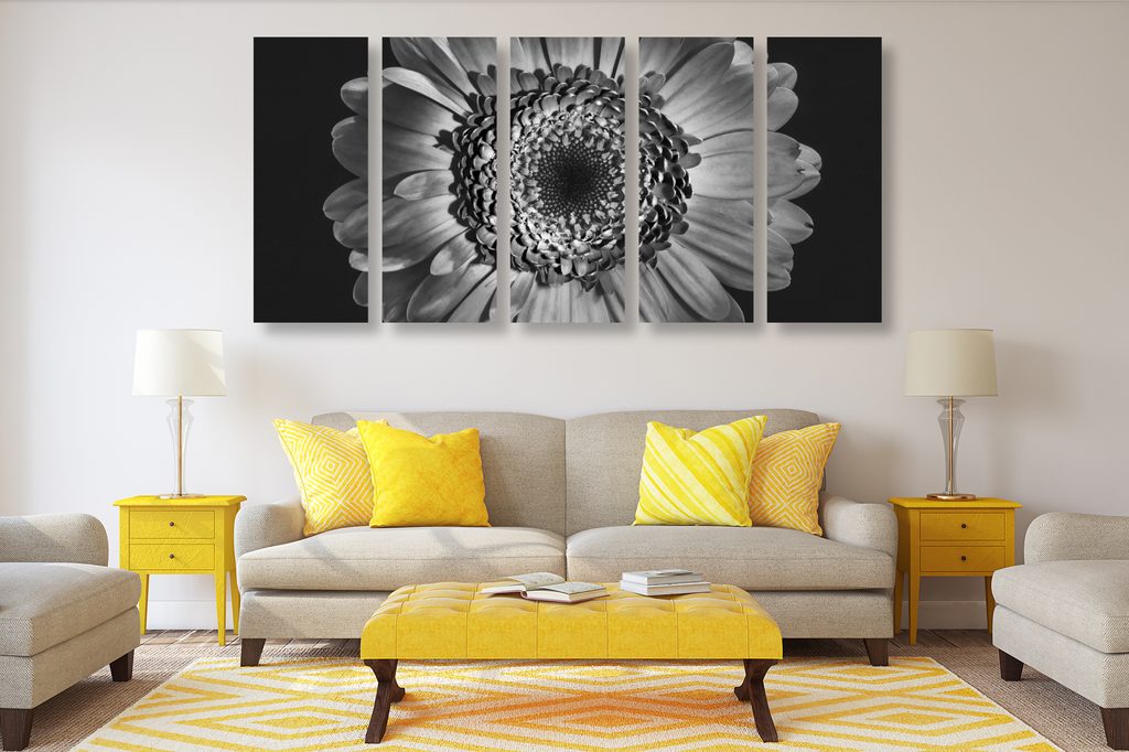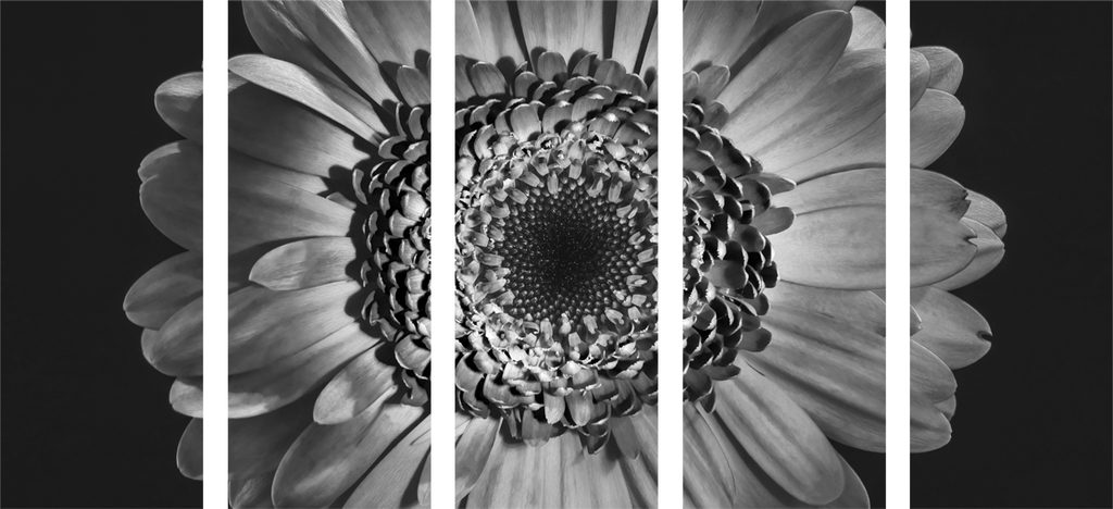 5-dielny obraz detail gerbery v čiernobielom prevedení