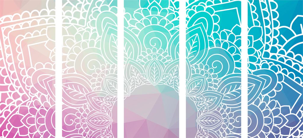 5-dielny obraz čiernobiela Mandala v štýle kvetov