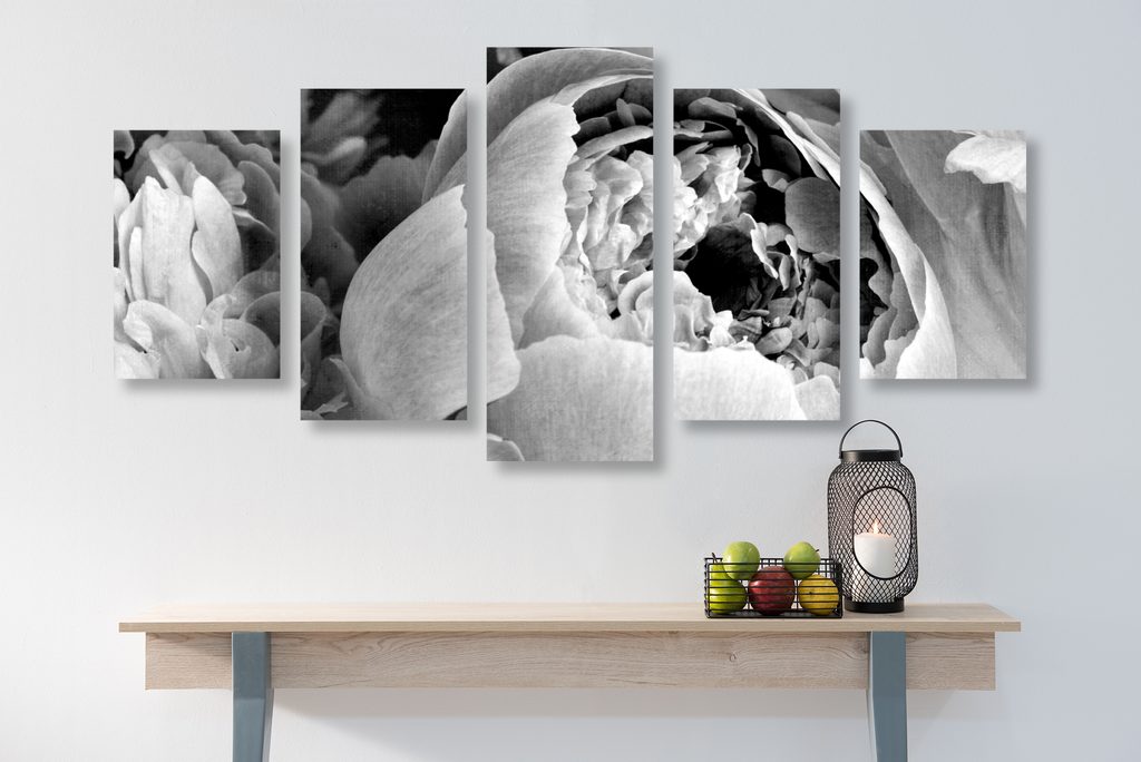 5-dielny obraz jemný luxus v čiernobielom prevedení