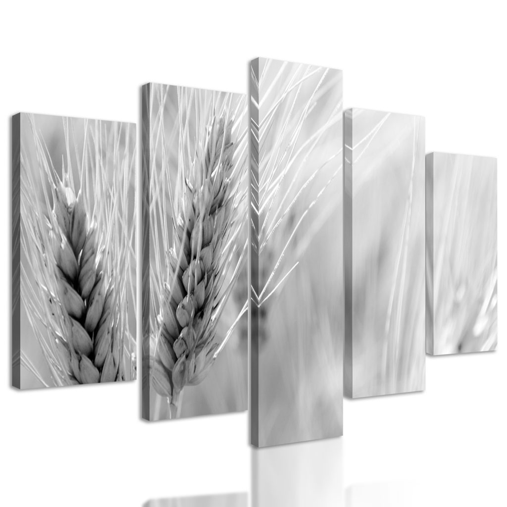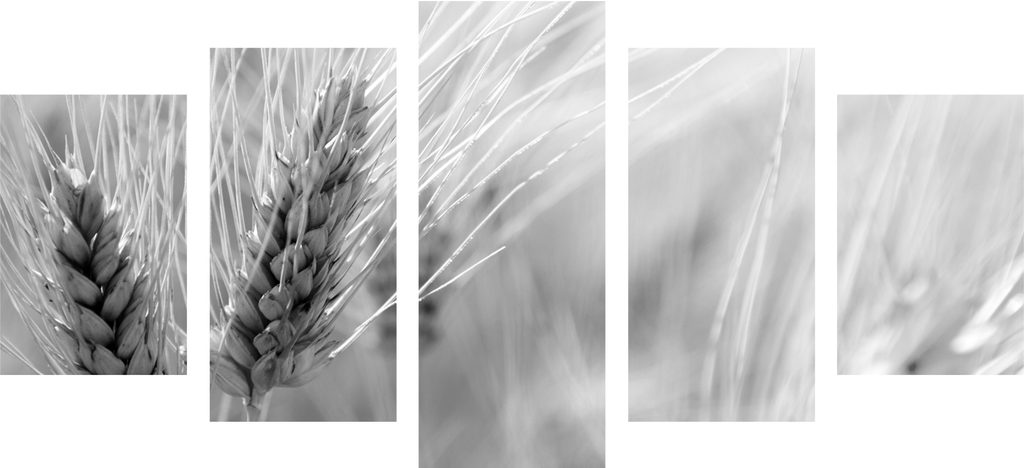 5-dielny obraz detail pšenice v čiernobielom prevedení