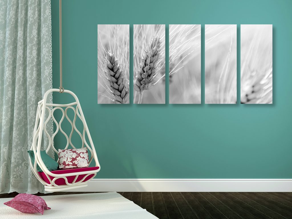 5-dielny obraz detail pšenice v čiernobielom prevedení