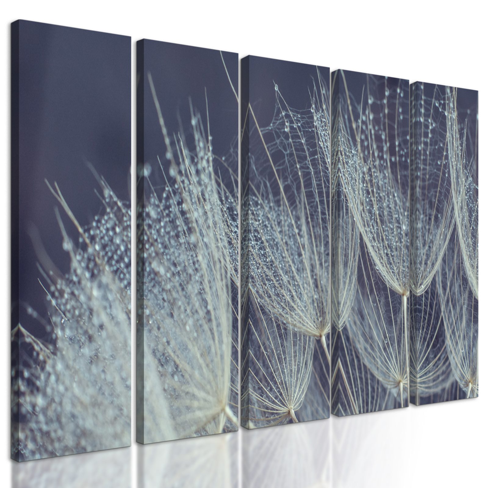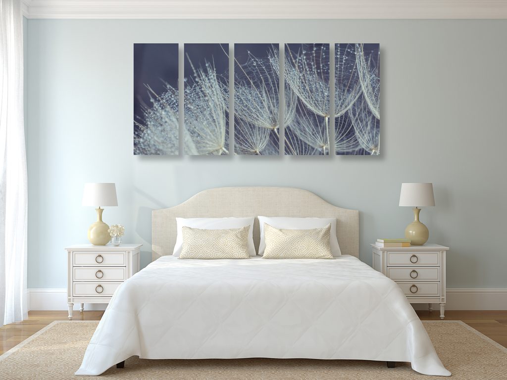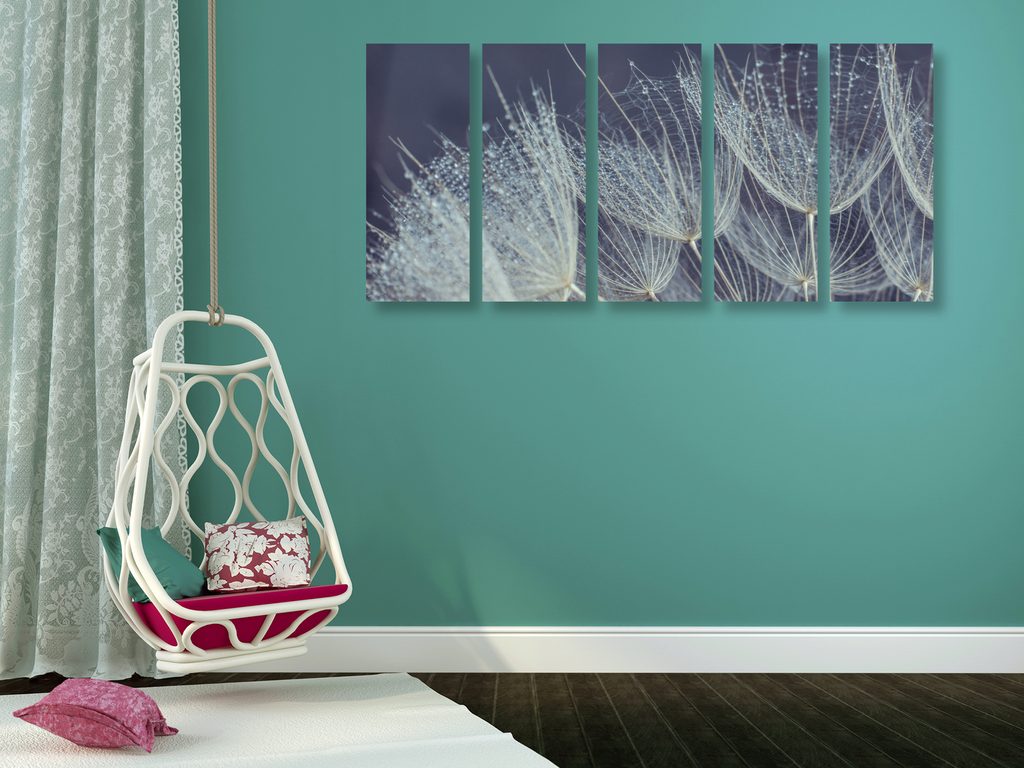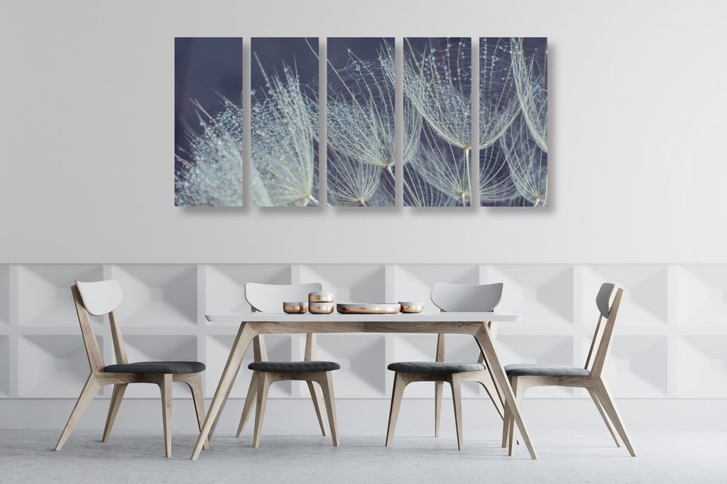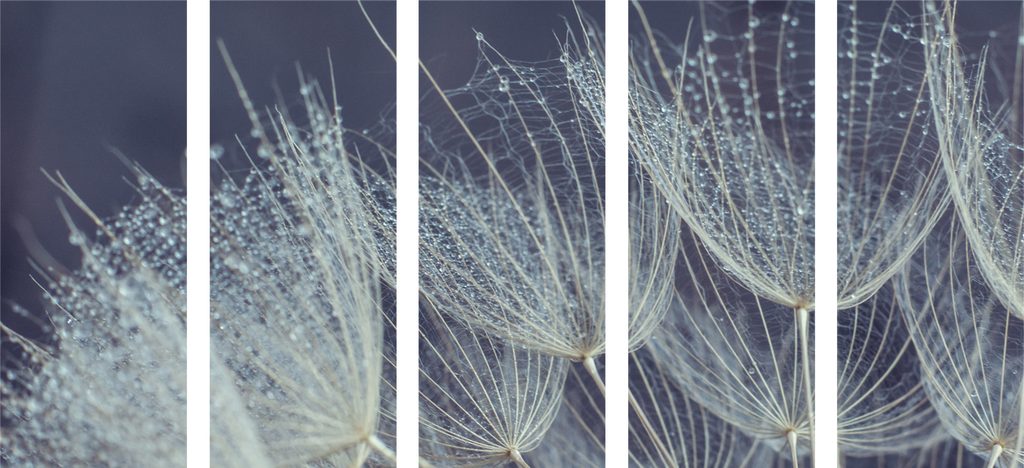 5-dielny obraz abstraktná púpava v čiernobielom prevedení