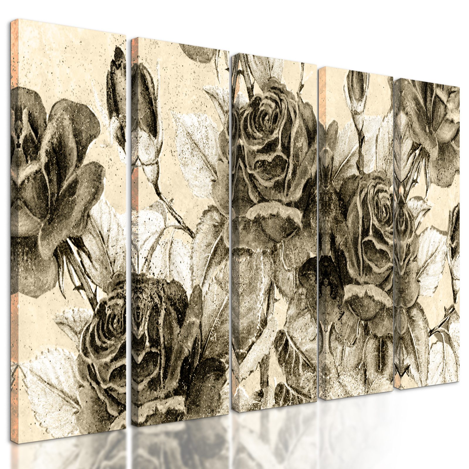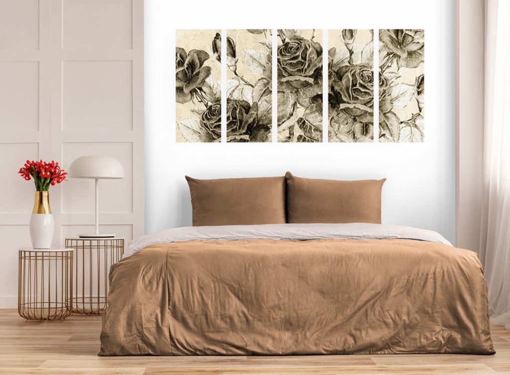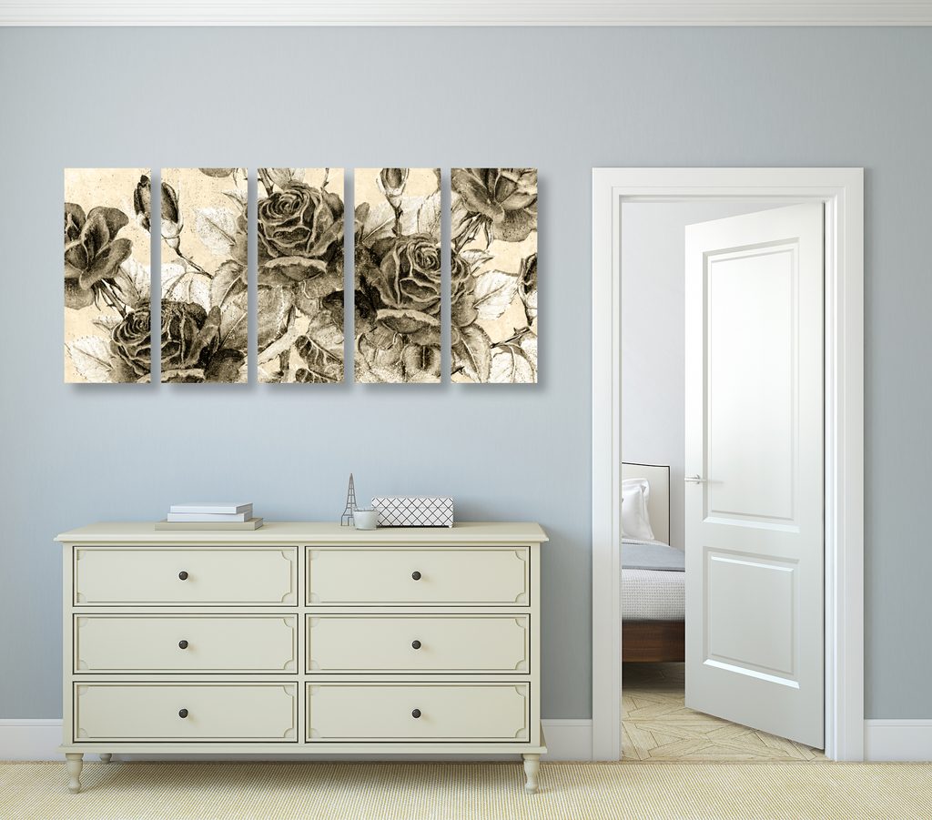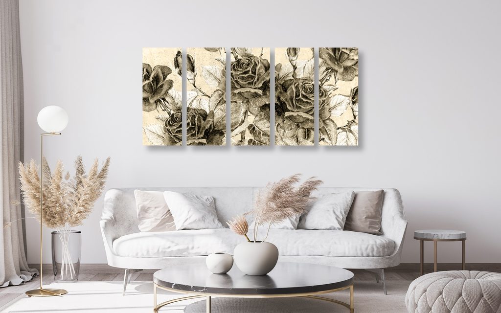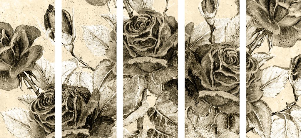 5-dielny obraz divé ruže v sépivom prevedení