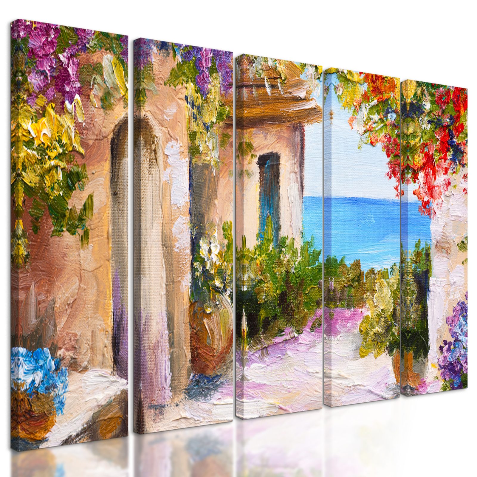 5-dielny obraz olejomaľba lúky v žiare slnka