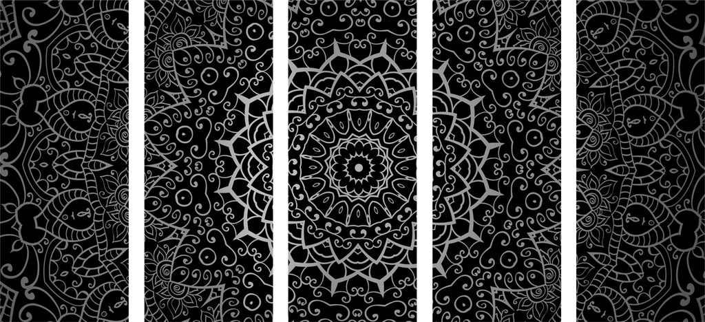 5-dielny obraz elegantá Mandala v čiernobielom prevedení