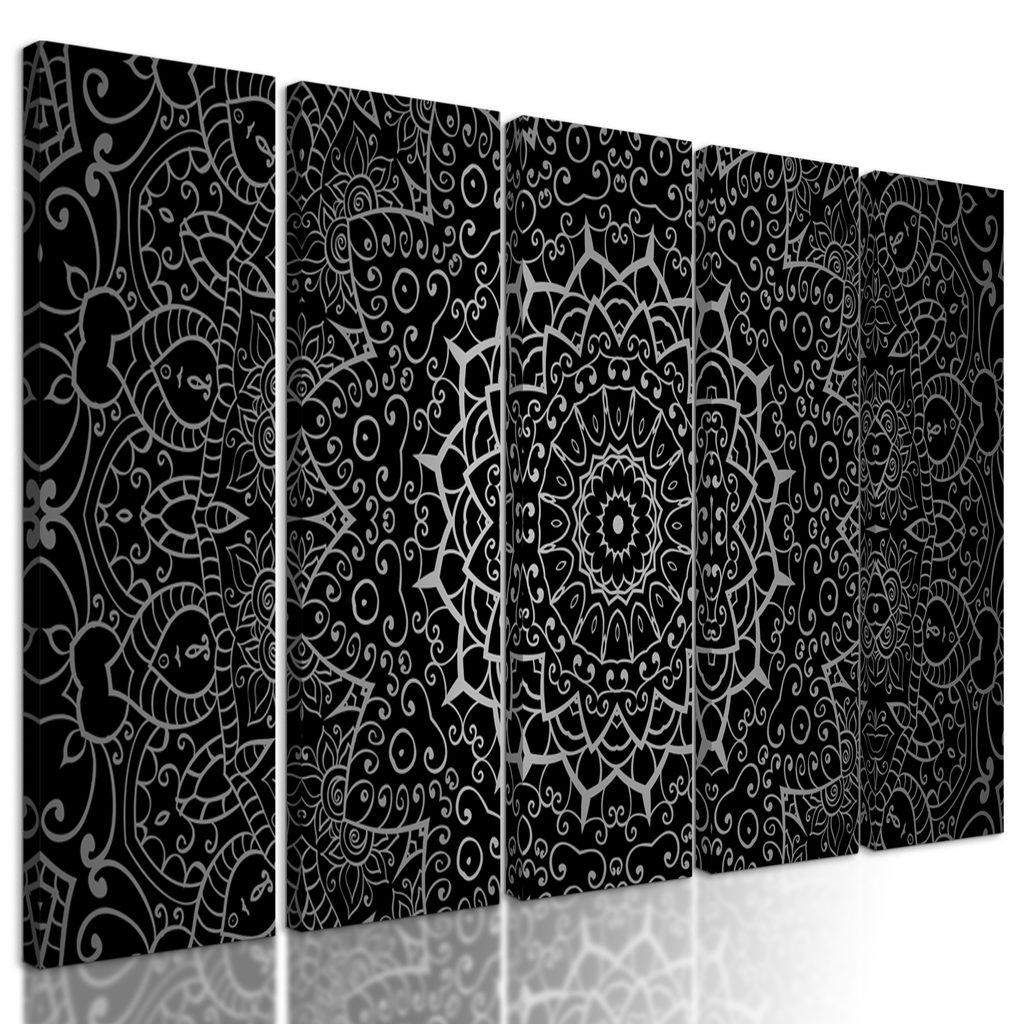 5-dielny obraz nádherná Mandala v čiernobielom prevedení
