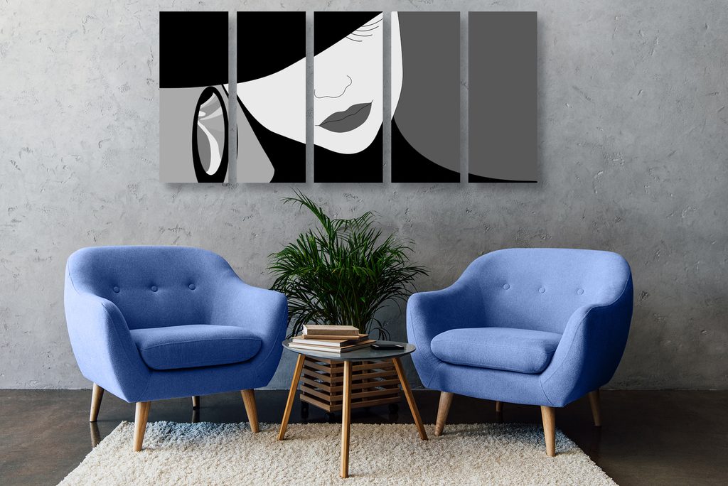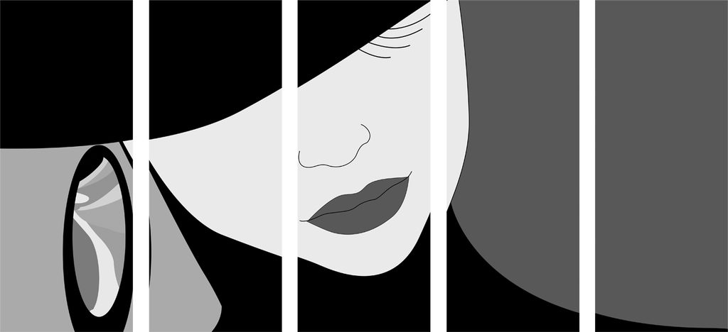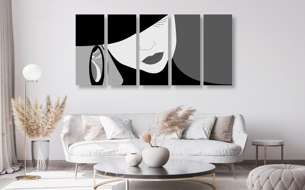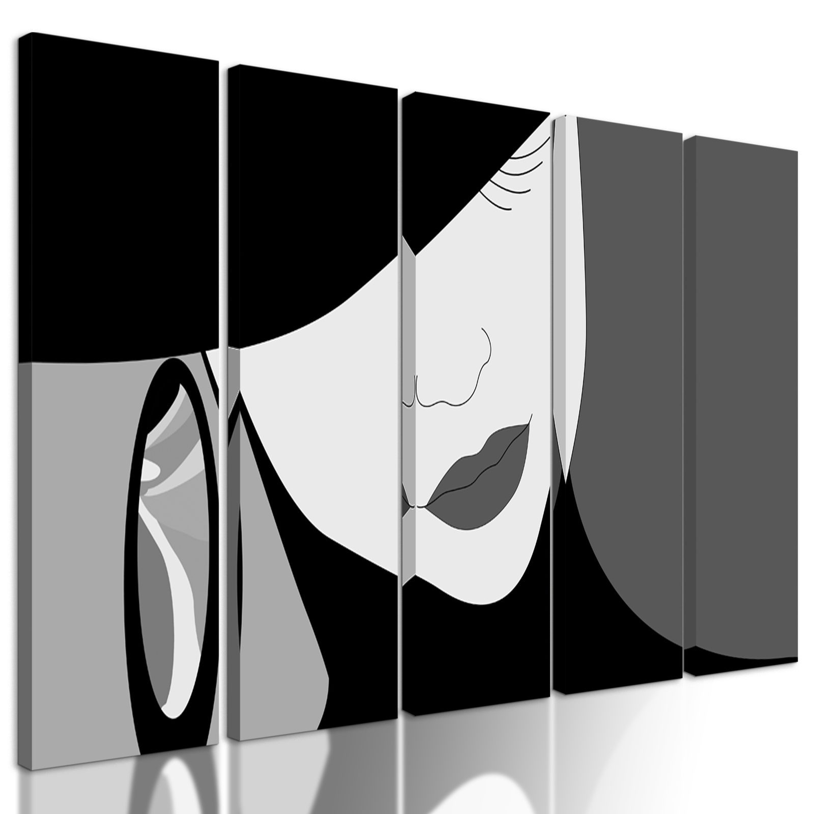 5-dielny obraz elgantnosť ženy v čiernobielom prevedení