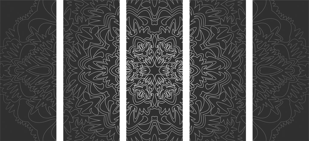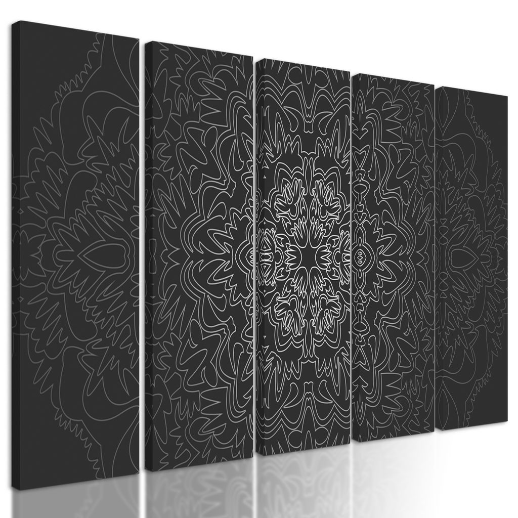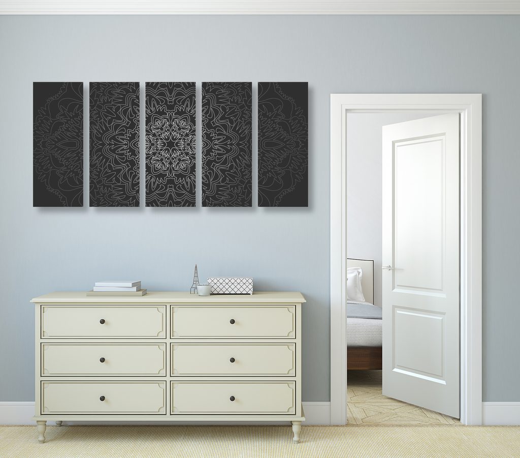 5-dielny obraz exotická Mandala v čiernobielom prevedení
