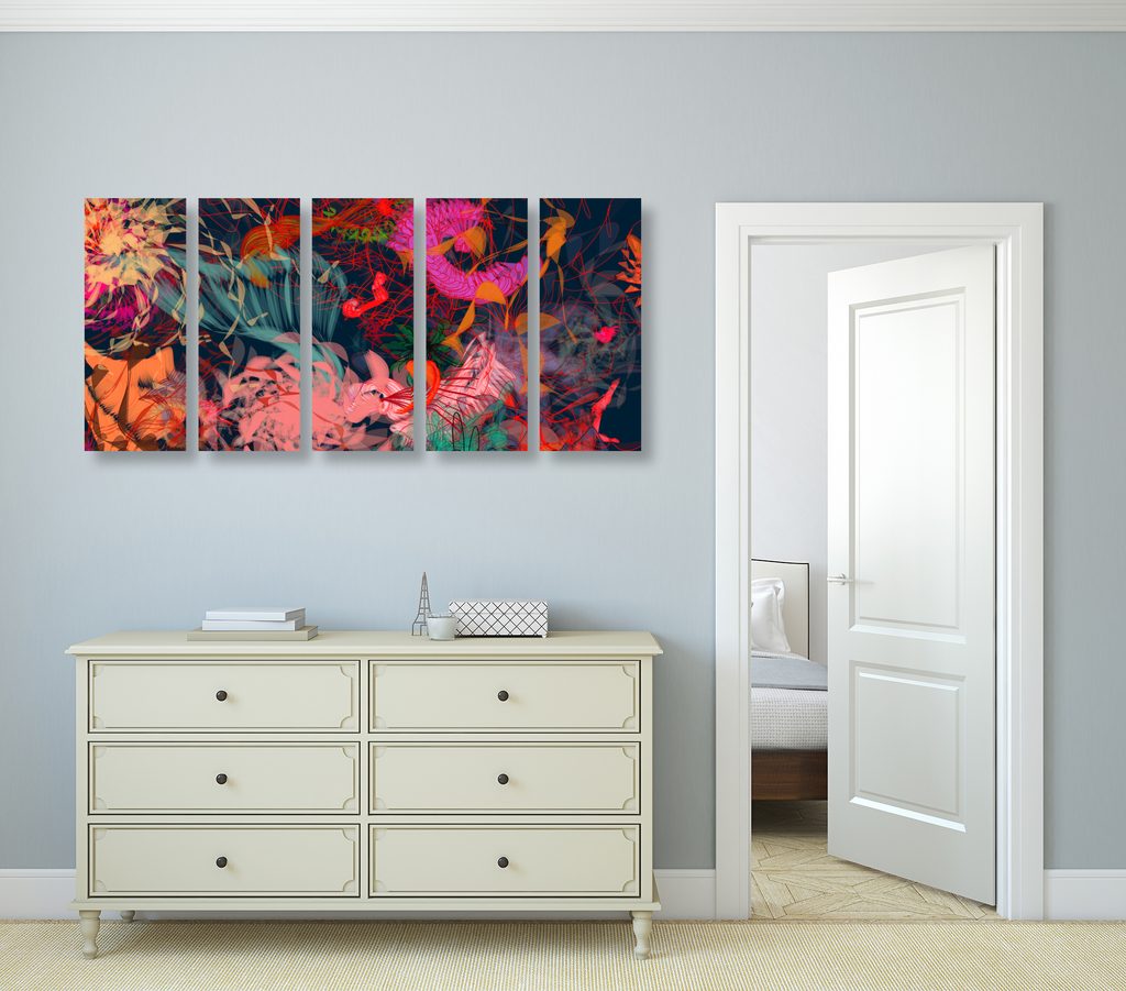 5-dielny obraz exotické kvety v abstraktnom prevedení