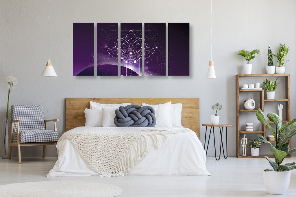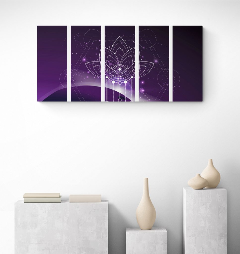 5-dielny obraz Feng Shui symbol na fialovom pozadí