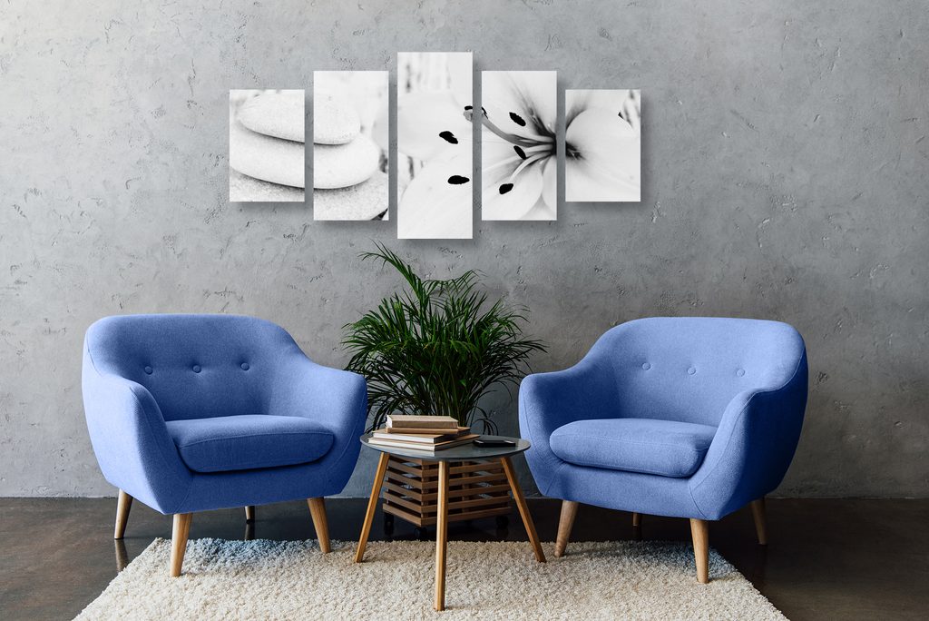 5-dielny obraz Feng Shui zátišie v čiernobielom prevedení