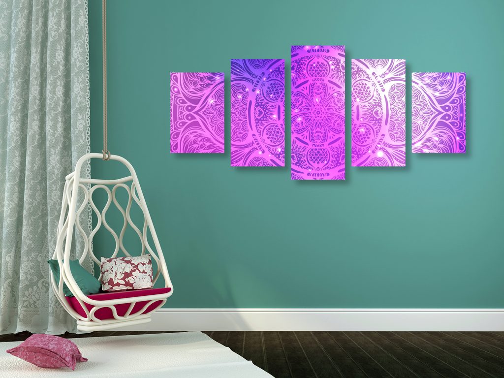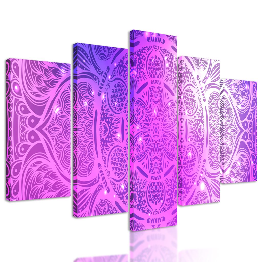 5-dielny obraz starodávna Mandala v čiernobielom prevedení