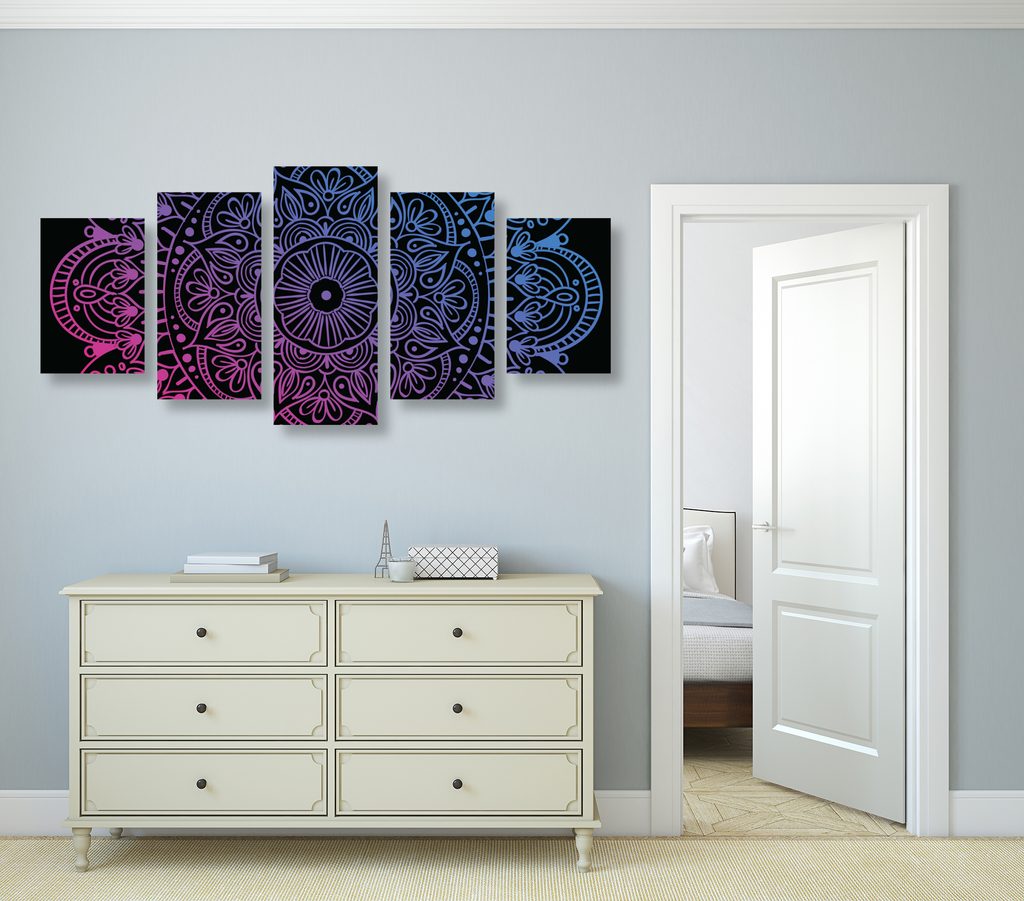 5-dielny obraz jemná kvetinová Mandala v čiernobielom prevedení