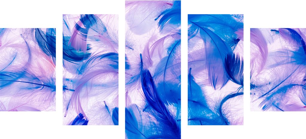 5-dielny obraz fialovo modré abstraktné pierka na bielom pozadí