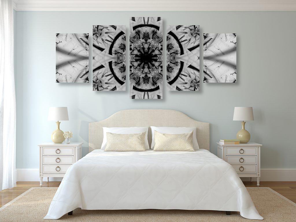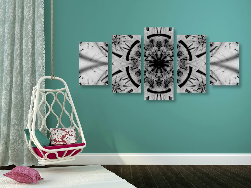 5-dielny obraz futuristická Mandala v čiernobielom prevedení
