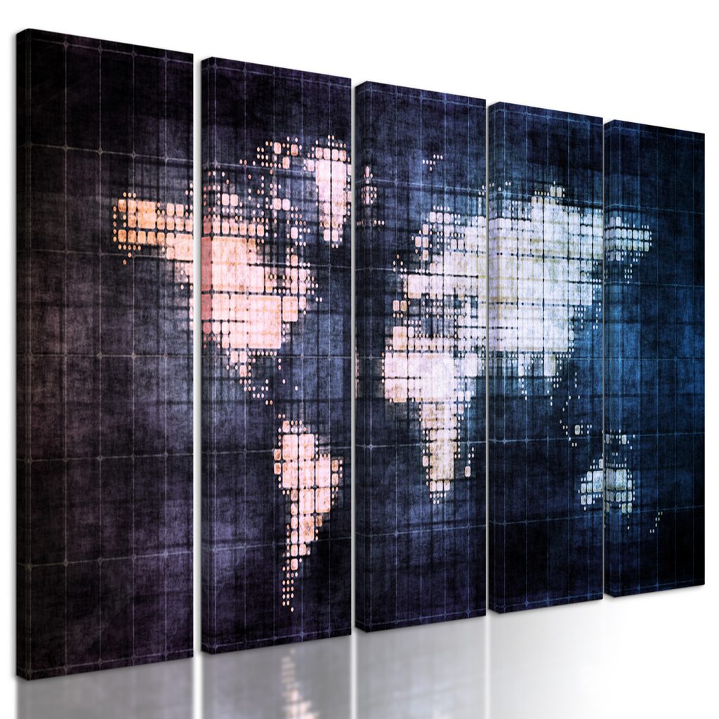 5-dielny obraz futuristická mapa sveta