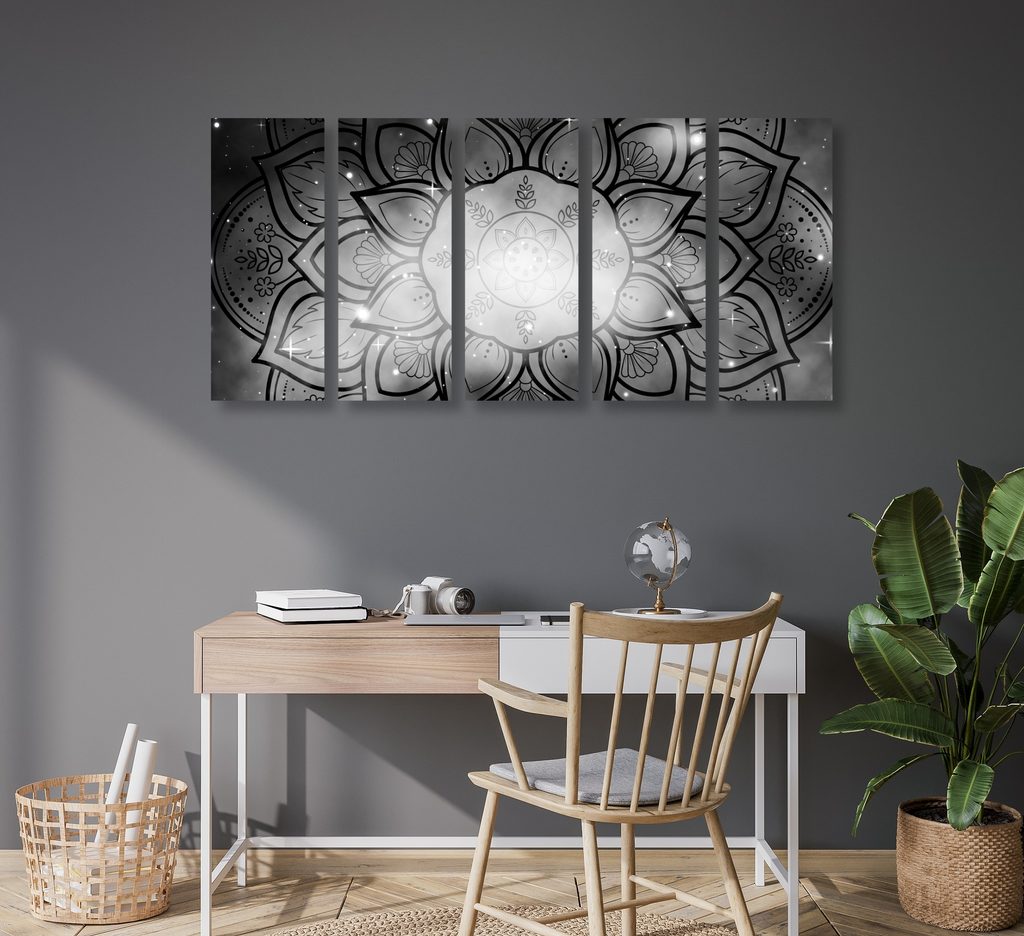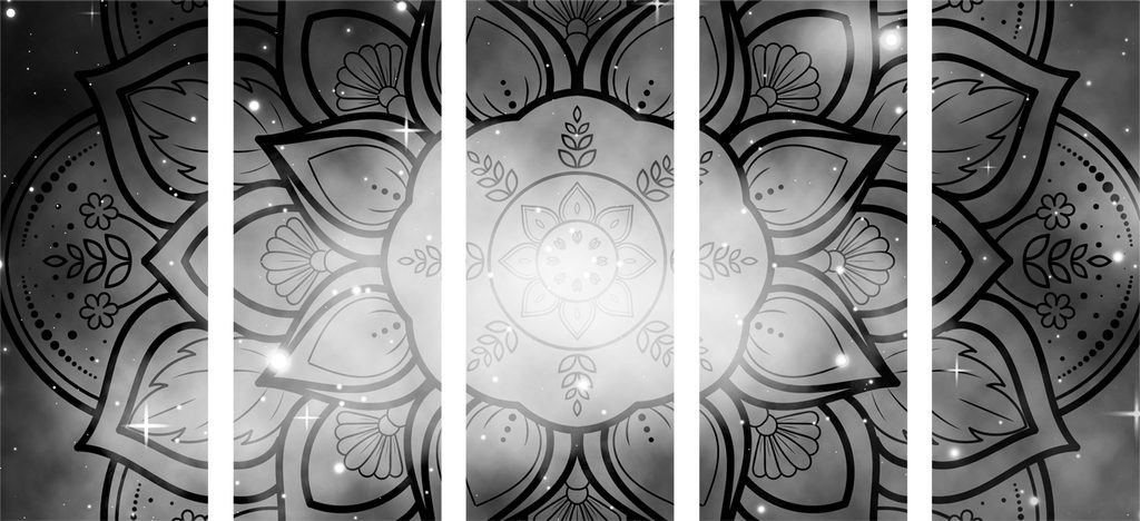5-dielny obraz galaktická Mandala v čiernobielom prevedení
