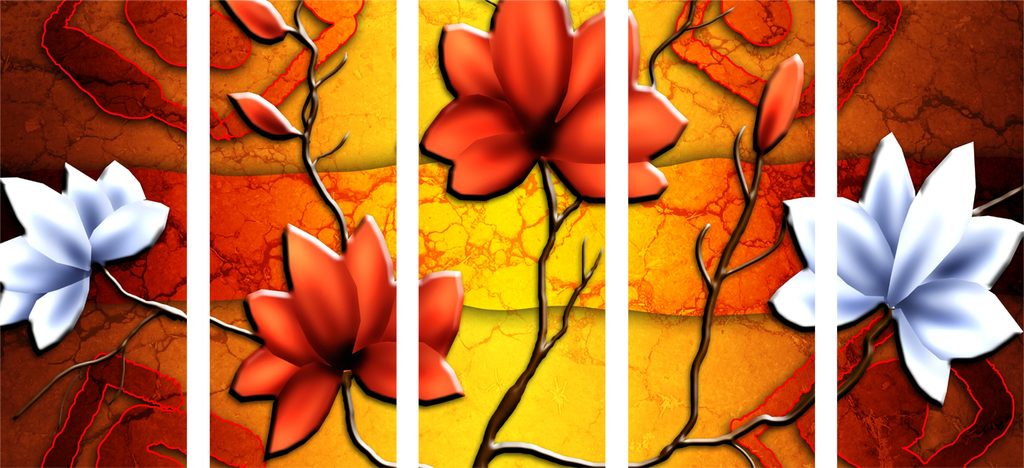 5-dielny obraz nádherné kvety vo vintage prevedení