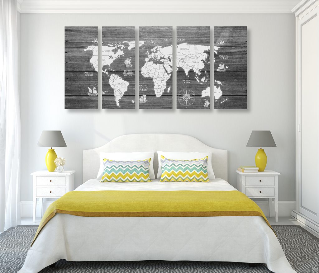 Obraz na korku detailná mapa sveta v čiernobielom prevedení