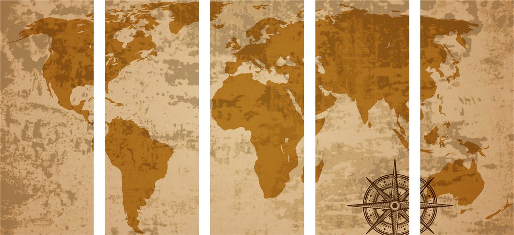 5-dielny obraz futuristická mapa sveta