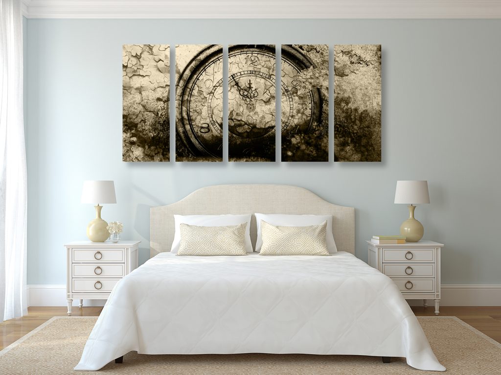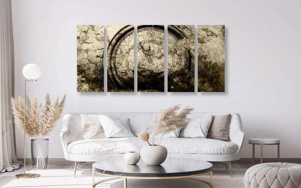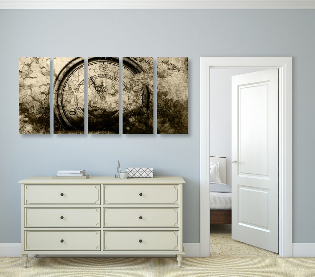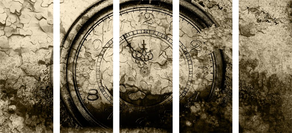 5-dielny obraz historické luxusné hodinky v sépiovom prevedení