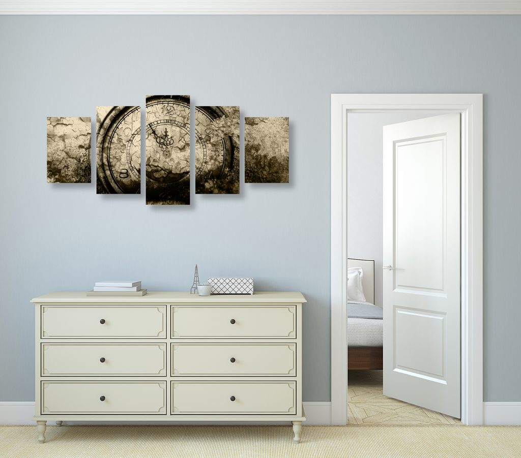 5-dielny obraz geografická mapa sveta v čiernobielom prevedení