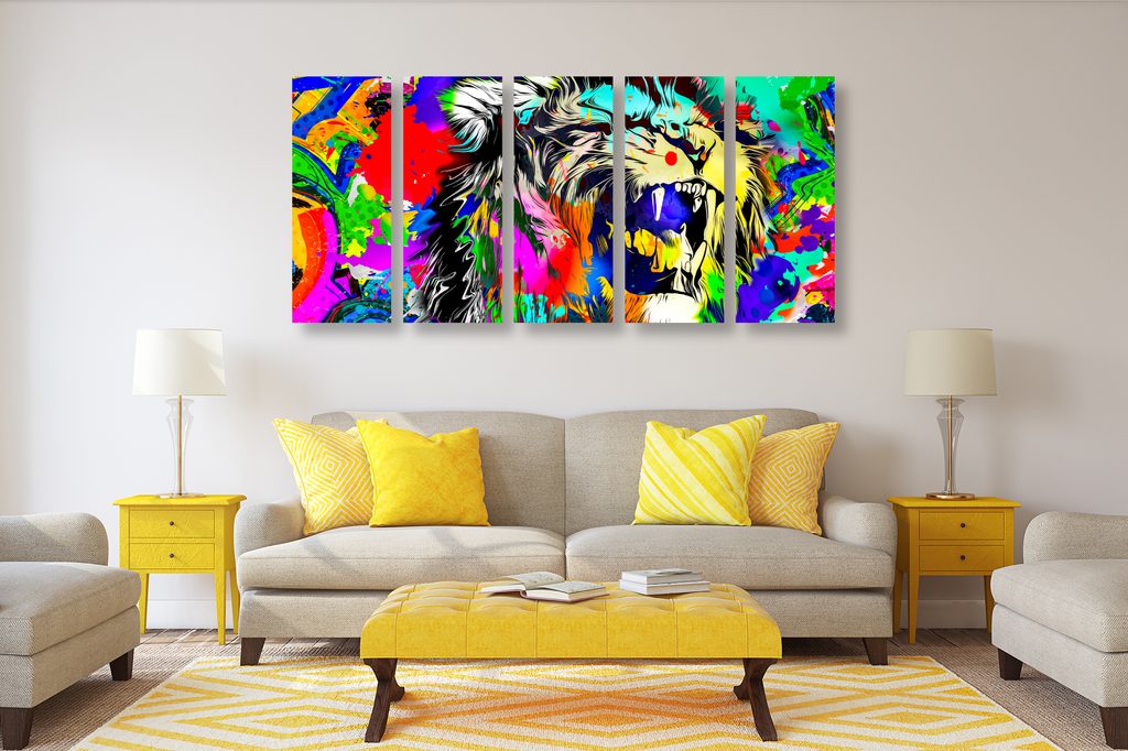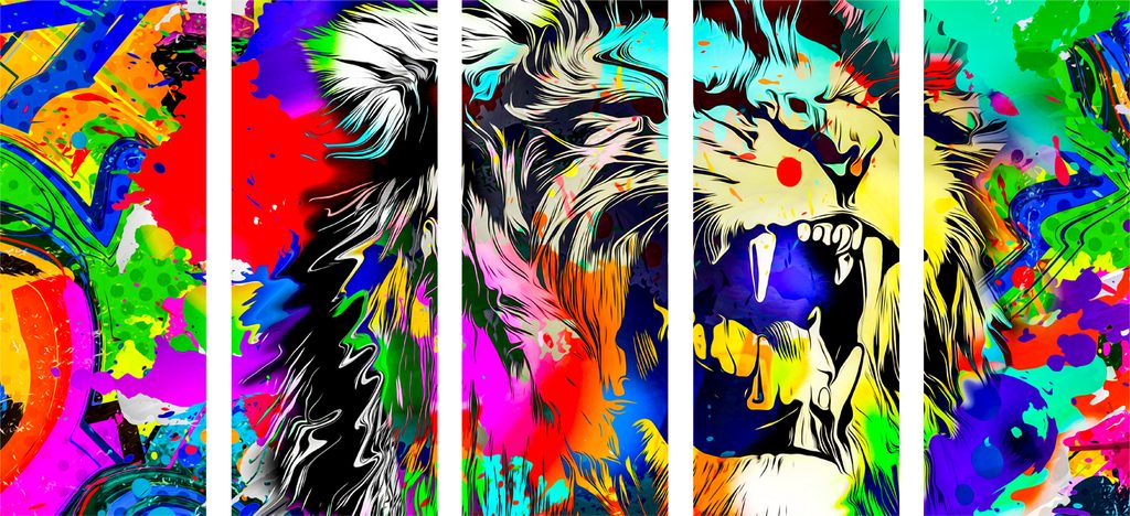 5-dielny obraz hlava tigra pestrofarebnom prevedení