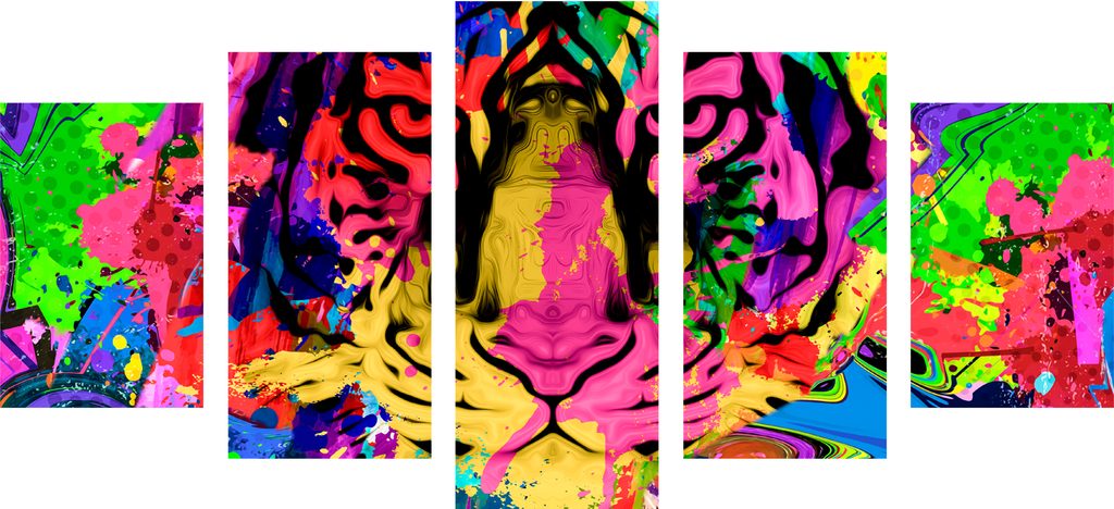 5-dielny obraz hlava tigra pestrofarebnom prevedení