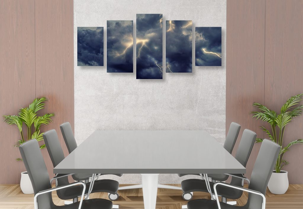 5-dielny obraz japonská abstrakcia v čiernobielom prevedení