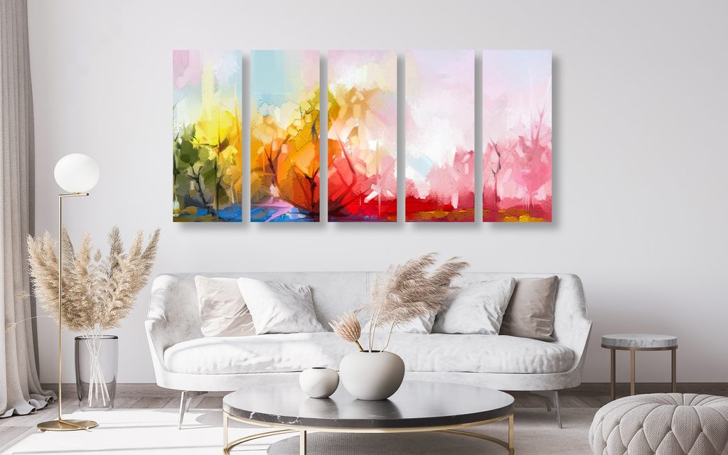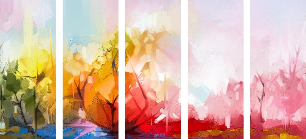 5-dielny obraz pastelovo sfarbená abstrakcia