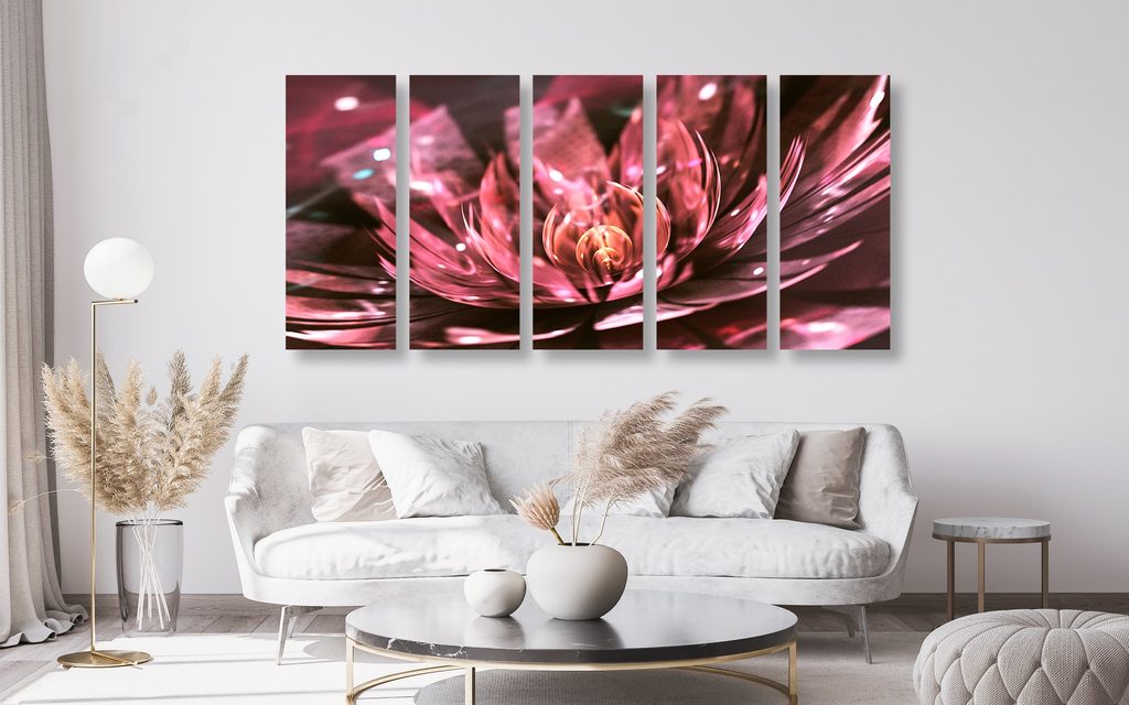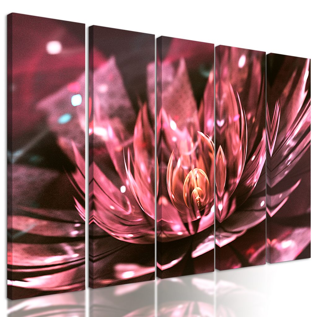5-dielny obraz ilúzia ružového lotosového kvetu