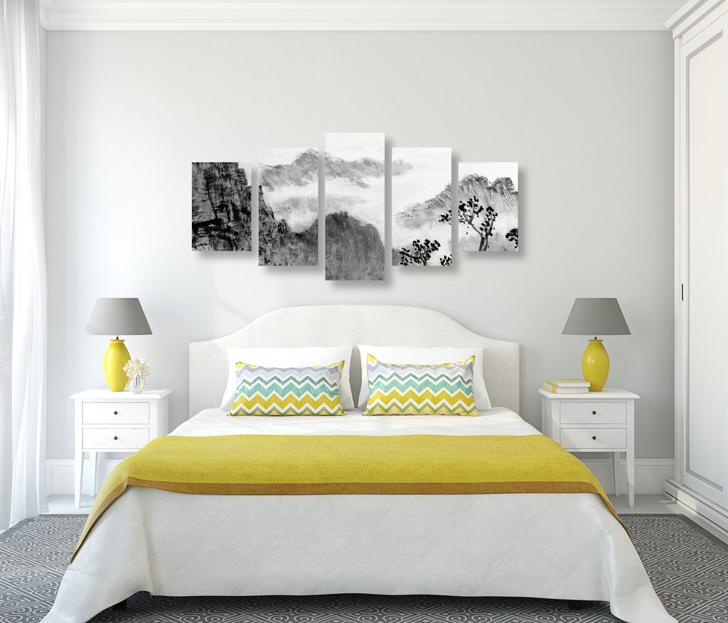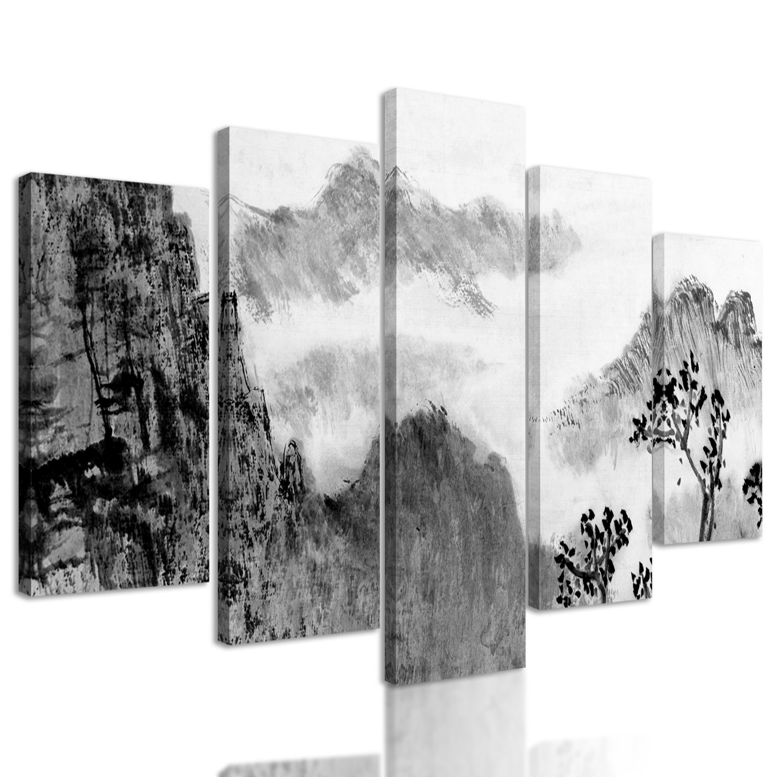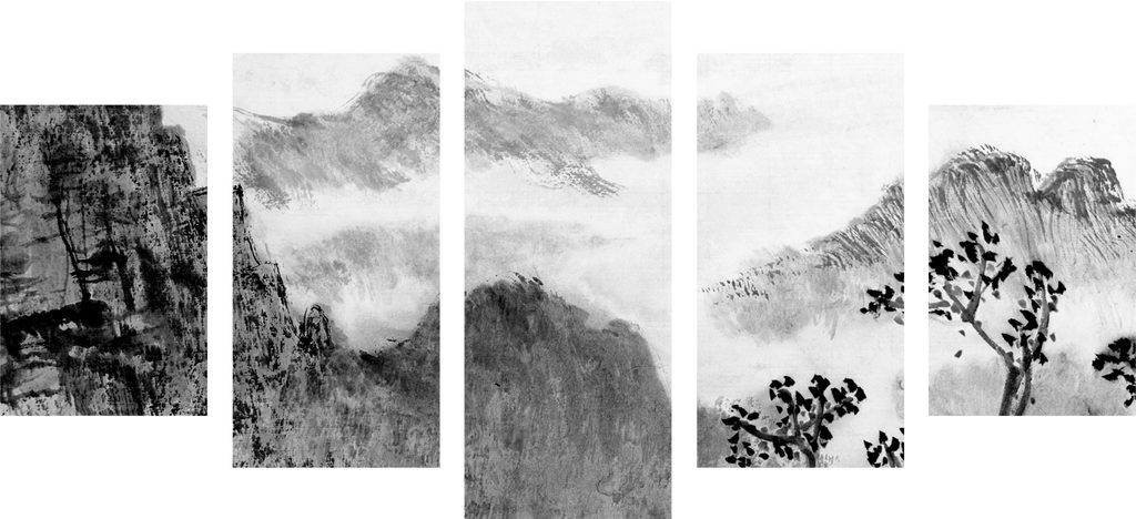 5-dielny obraz impozantná maľba krajiny v čiernobielom prevedení