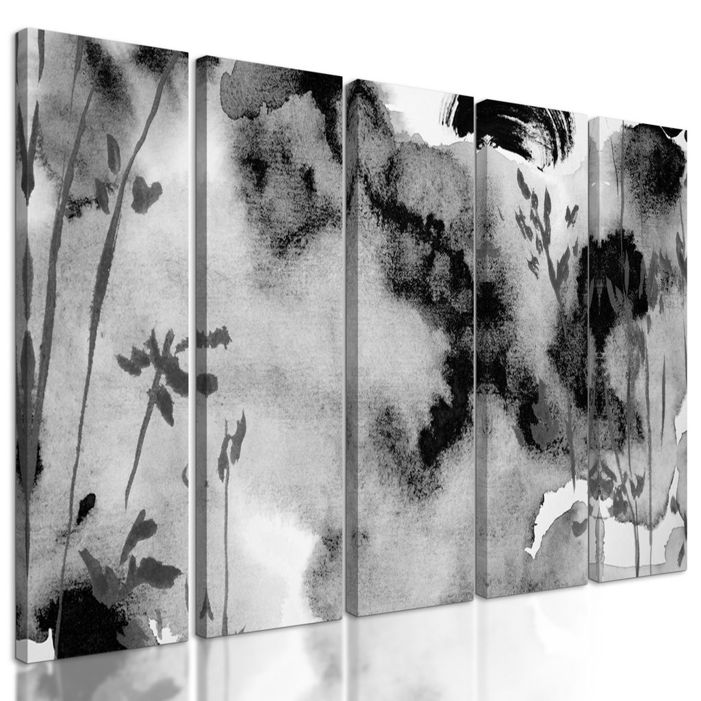 5-dielny obraz japonská abstrakcia v čiernobielom prevedení