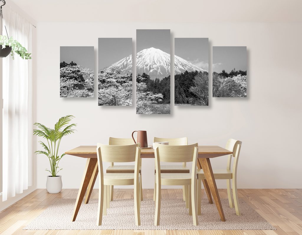 5-dielny obraz Japonská sopka Fuji v čiernobielom prevedení