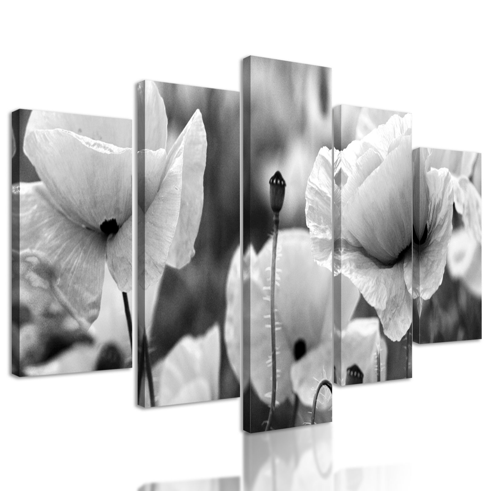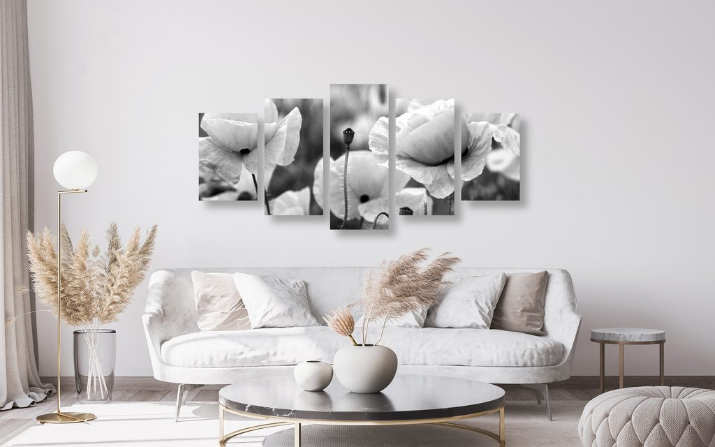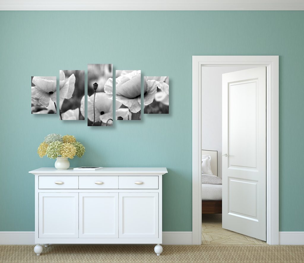 5-dielny obraz jedinečné divé maky v čiernobielom prevedení