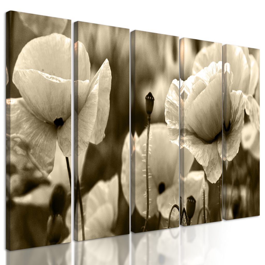 5-dielny obraz jedinečné divé maky v sépiovom prevedení