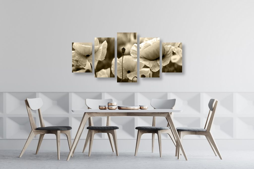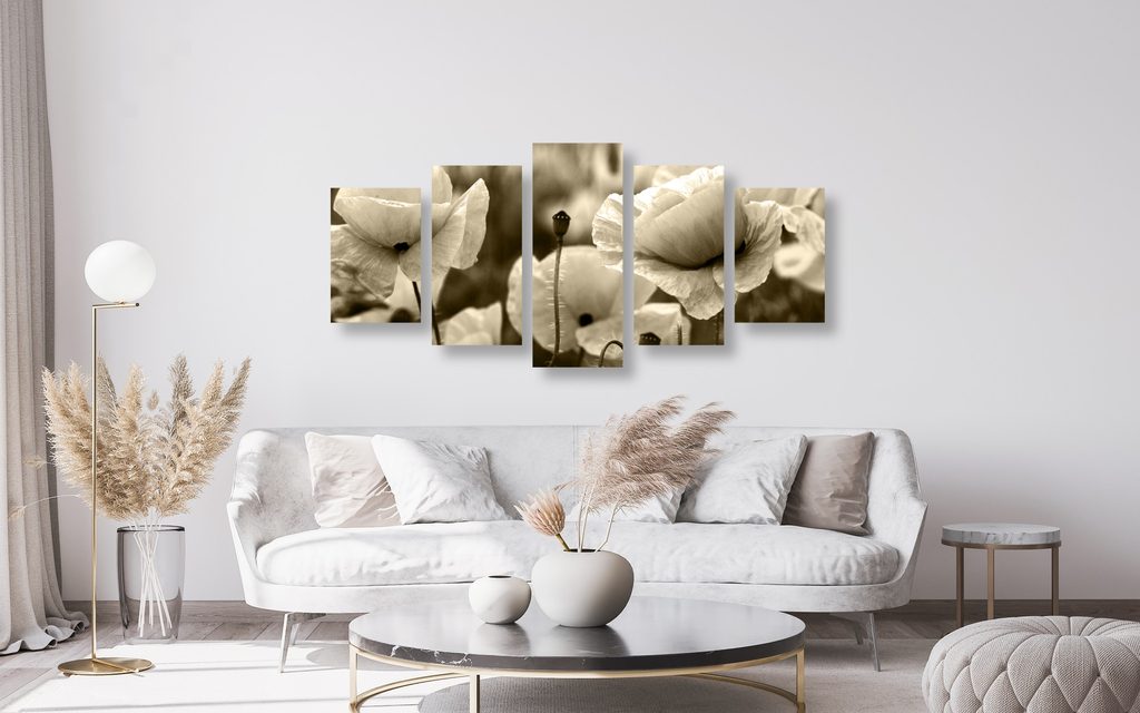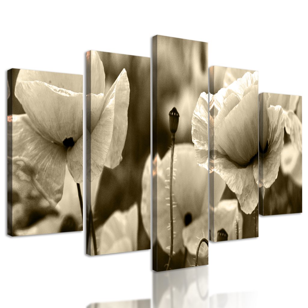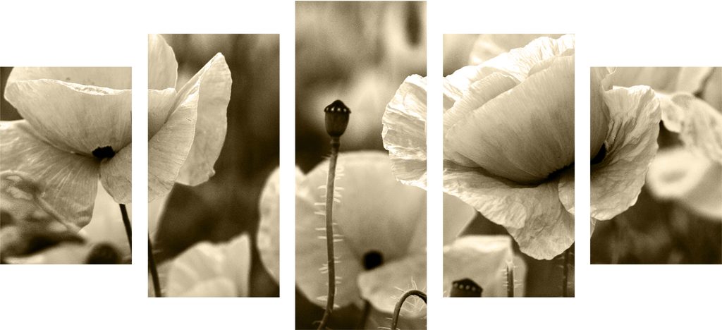 5-dielny obraz jedinečné divé maky v sépiovom prevedení