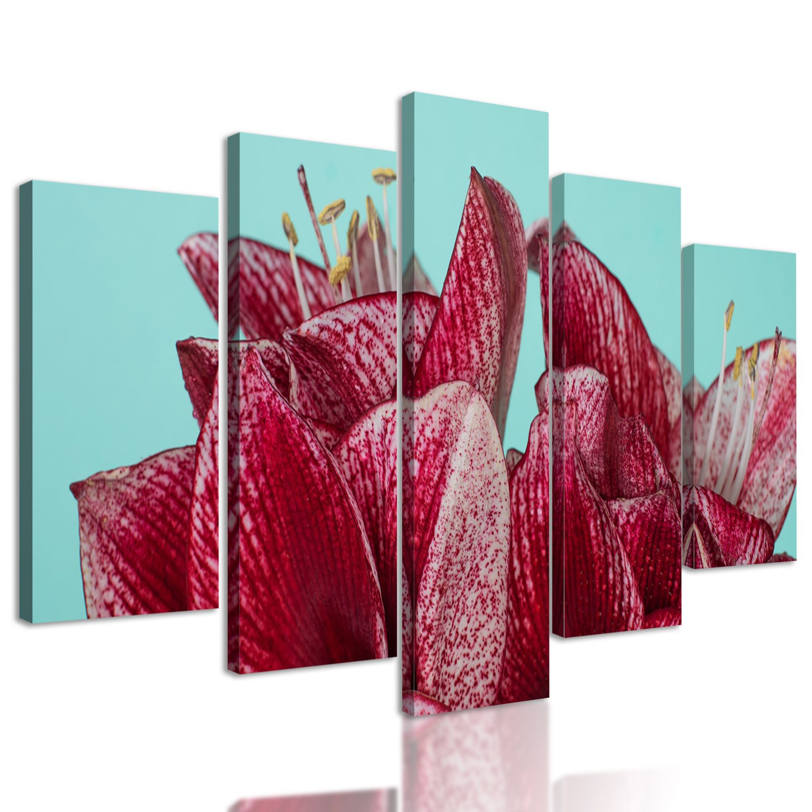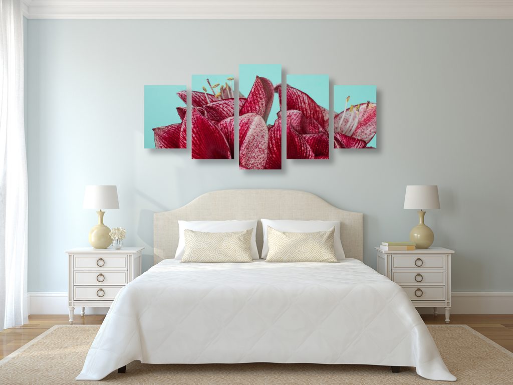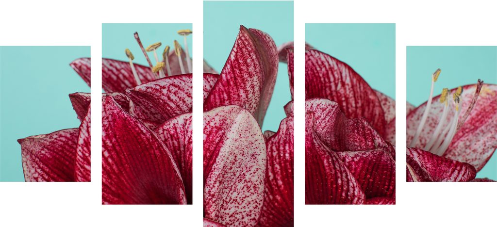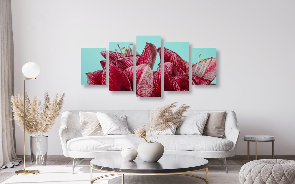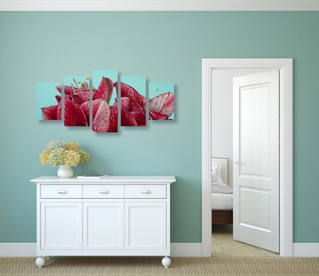 5-dielny obraz jedinečné kvety na tyrkysovom pozadí