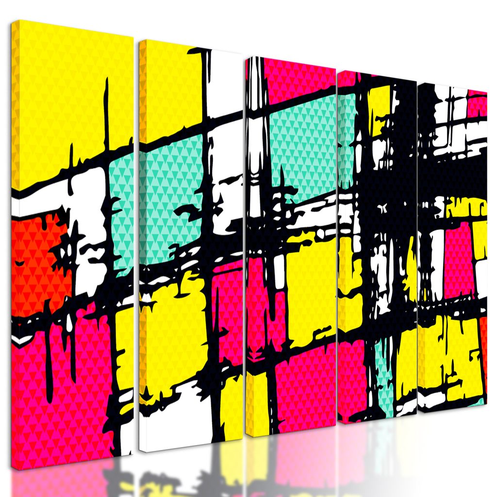 5-dielny obraz čiernobiely buldog v pop art prevedení
