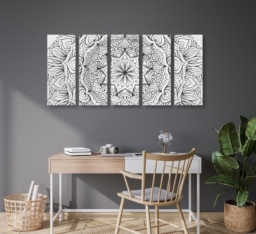 5-dielny obraz jemná abstrakcia kvetu v čiernobielom prevedení