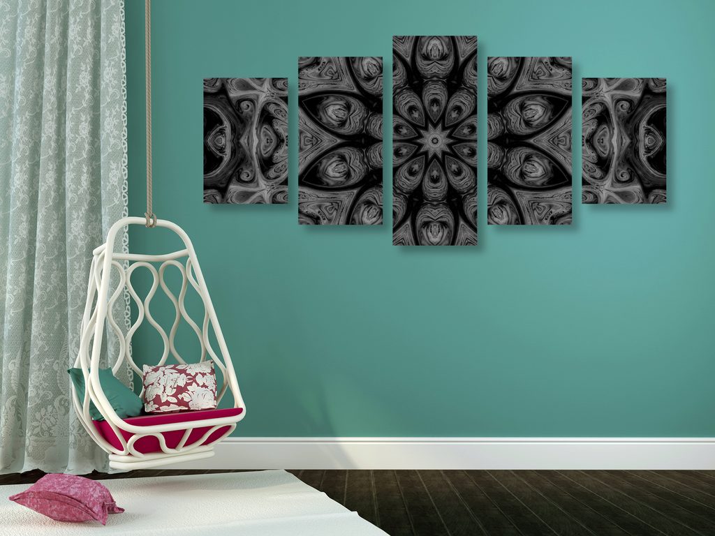 5-dielny obraz jemná mandala v čiernobielom prevedení