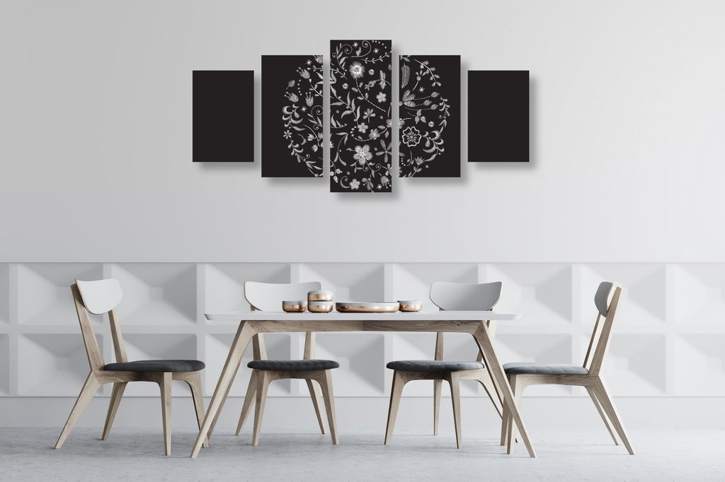 5-dielny obraz jemné kvety s folklórnym motívom