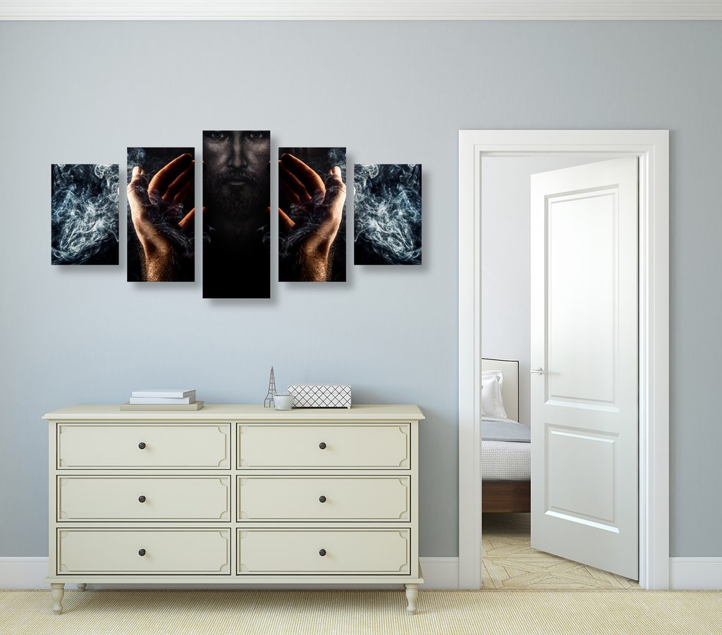 5-dielny obraz Ježiš v čiernobielom prevedení