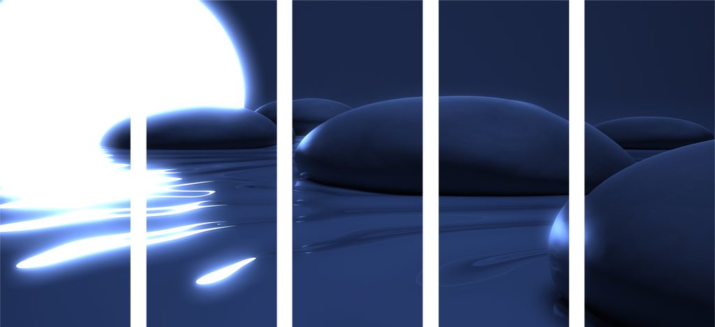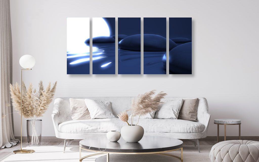 5-dielny obraz plážové zátišie s Zen kameňmi v čiernobielom prevedení