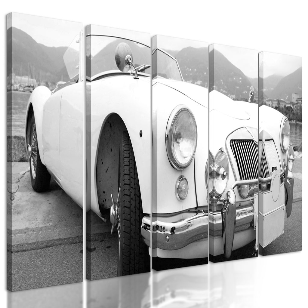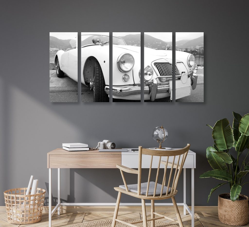 5-dielny obraz klasický veterán v čiernobielom prevedení