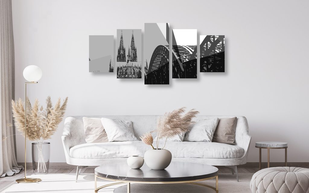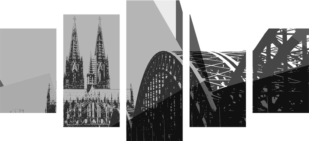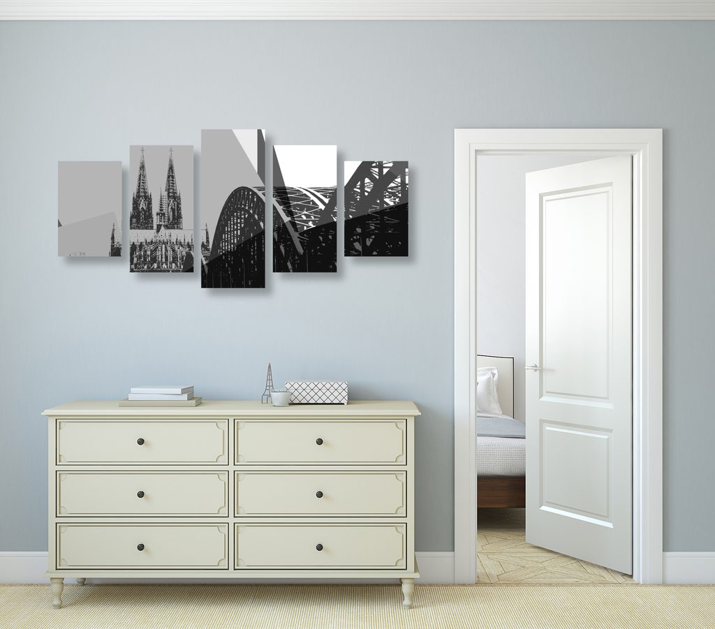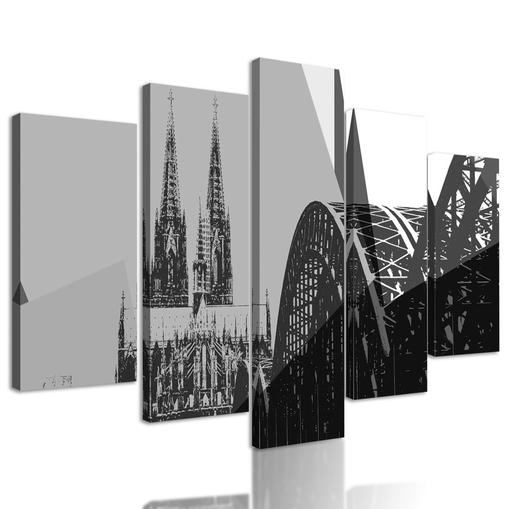 5-dielny obraz Kolínsky most v čiernobielom prevedení