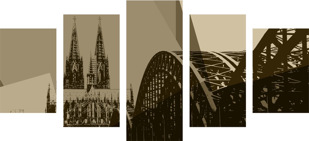 5-dielny obraz Kolínsky most v sépivom prevedení