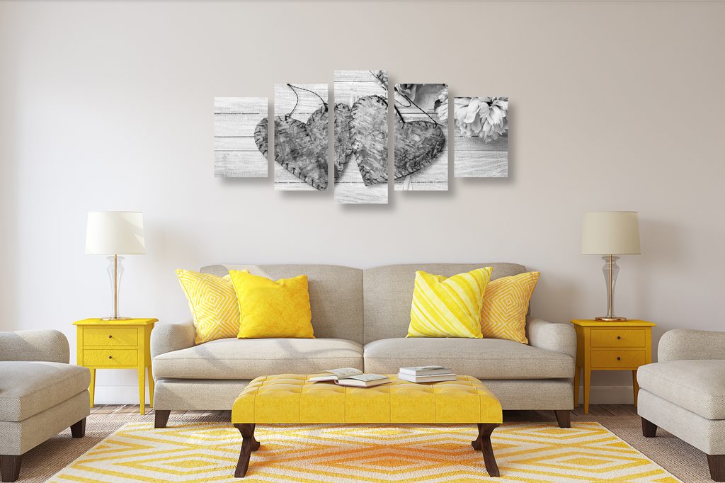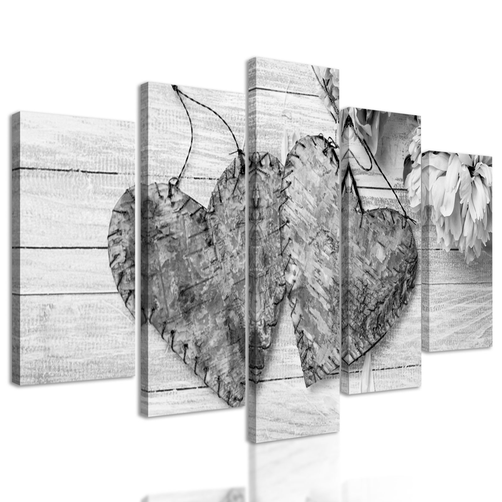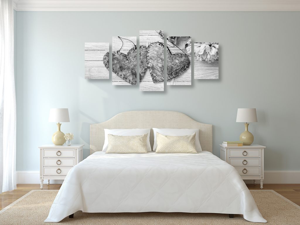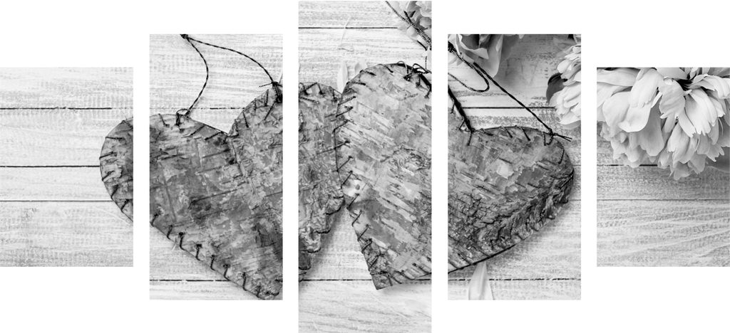 5-dielny obraz korkové srdiečka v čiernobielom prevedení