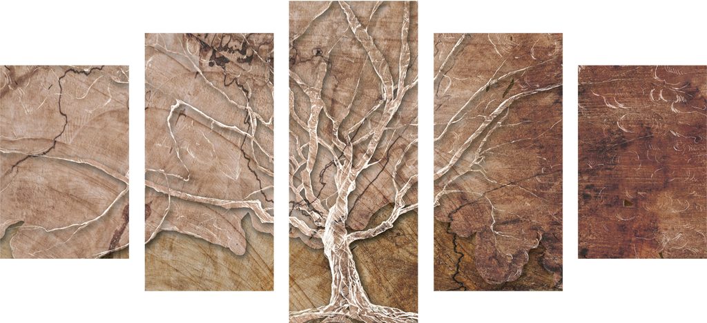 5-dielny obraz koruna stromu na dreve
